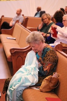 The Pathways Sunday school class makes prayer blankets created for a specific person in need. Each streamer of the blanket is tied and prayed over by our church family.